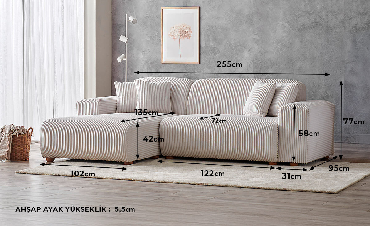 | Kumaş: Kalın fitilli, Pet-friendly, Kadife Dokulu Kumaş, 100% PES Kumaş |