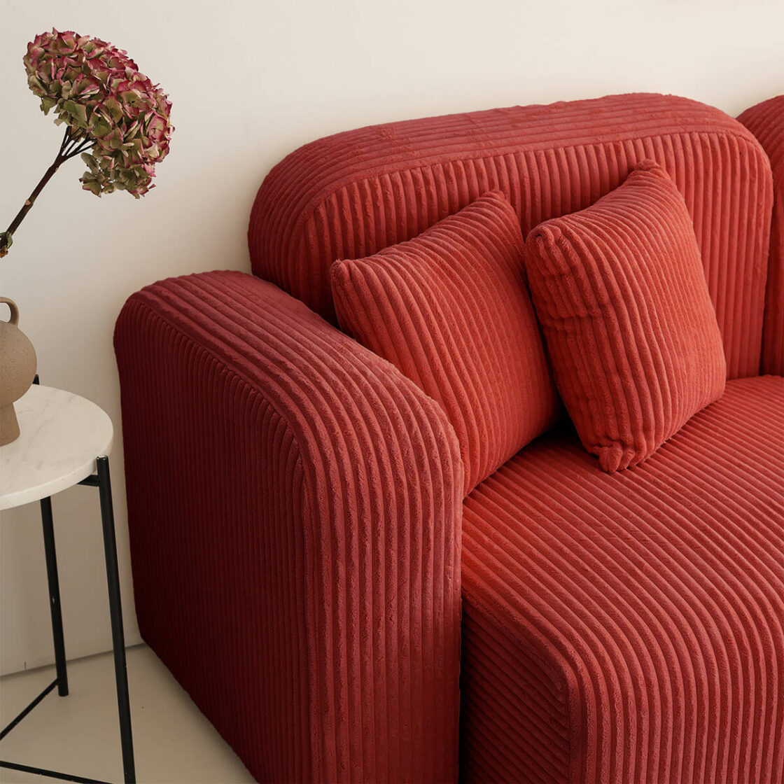 Yenilikçi yuvarlak hatlı tasarımıyla CUBO Modüler Köşe Koltuk. Pet ailelerin de bayılacağı kalın fitilli yeni nesil kumaş hem sizi sarmalayacak kadar yumuşak hem de pet-friendly. Sık dokuma bu yeni nesil kumaş dokusuyla kadifeyi anımsatsa da bildiğiniz kadife kumaşlar gibi terletme ve parlama yapmaz. Nemli bir bezle kolaylıkla temizlenebilir.