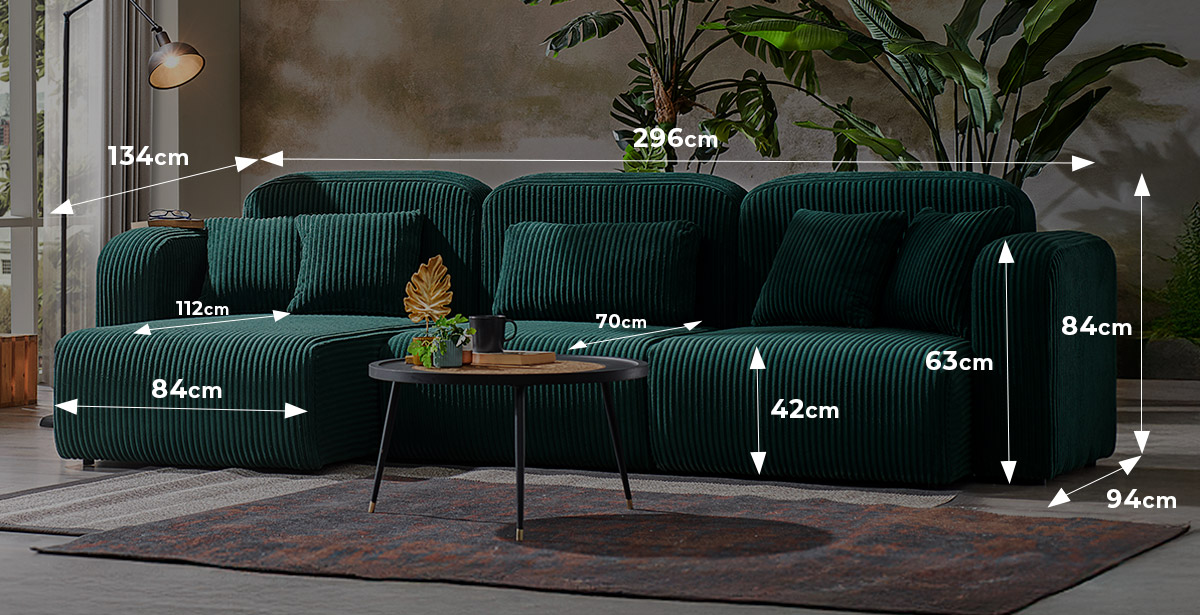 CUBO Modüler Köşe Koltuk ister sağ isterseniz sol köşe olarak kullanılabilir. Evde değişebilecek ihtiyaçlarınıza göre değişerek dekorasyona uyum sağlar. Kırlentlerle beraber gönderilmektedir.