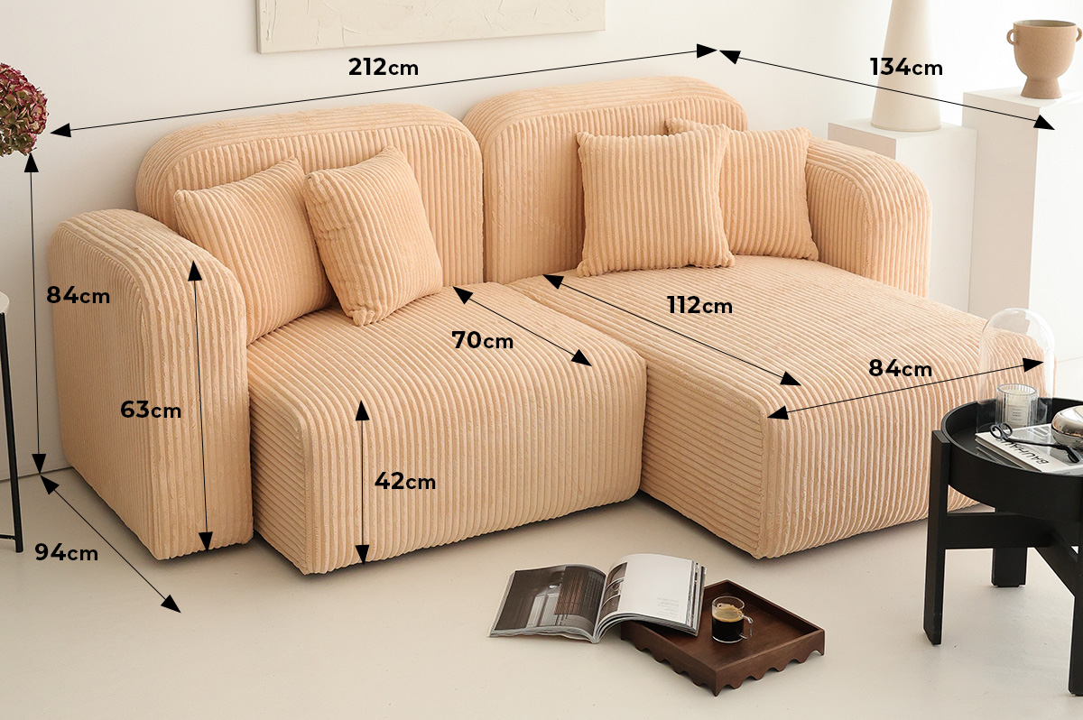 Yenilikçi yuvarlak hatlı tasarımıyla CUBO Modüler Mini Köşe Koltuk. Pet ailelerin de bayılacağı kalın fitilli yeni nesil kumaş hem sizi sarmalayacak kadar yumuşak hem de pet-friendly. Sık dokuma bu yeni nesil kumaş dokusuyla kadifeyi anımsatsa da bildiğiniz kadife kumaşlar gibi terletme ve parlama yapmaz. Nemli bir bezle kolaylıkla temizlenebilir.