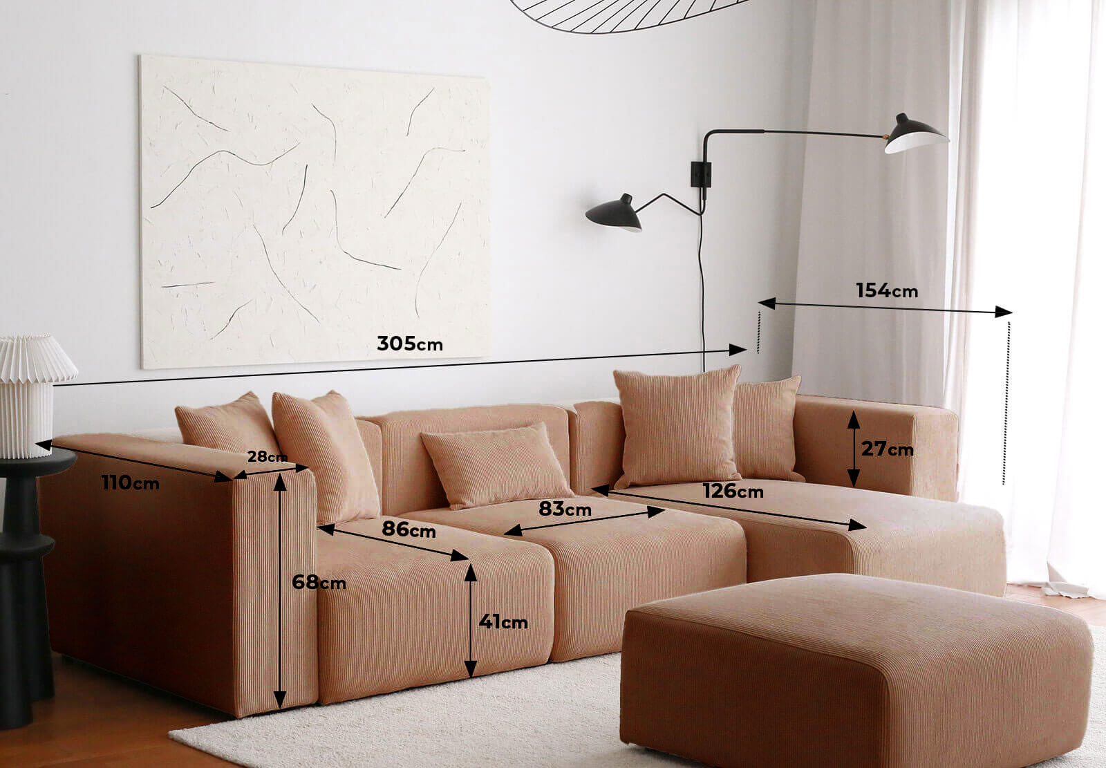 YOLO Modüler Köşe Koltuk ister sağ isterseniz sol köşe olarak kullanılabilir. Evde değişebilecek ihtiyaçlarınıza göre değişerek dekorasyona uyum sağlar. Kırlentlerle beraber gönderilmektedir. YOLO Puf ekstra satın alınarak takıma eklenebilir.