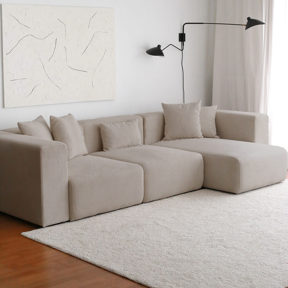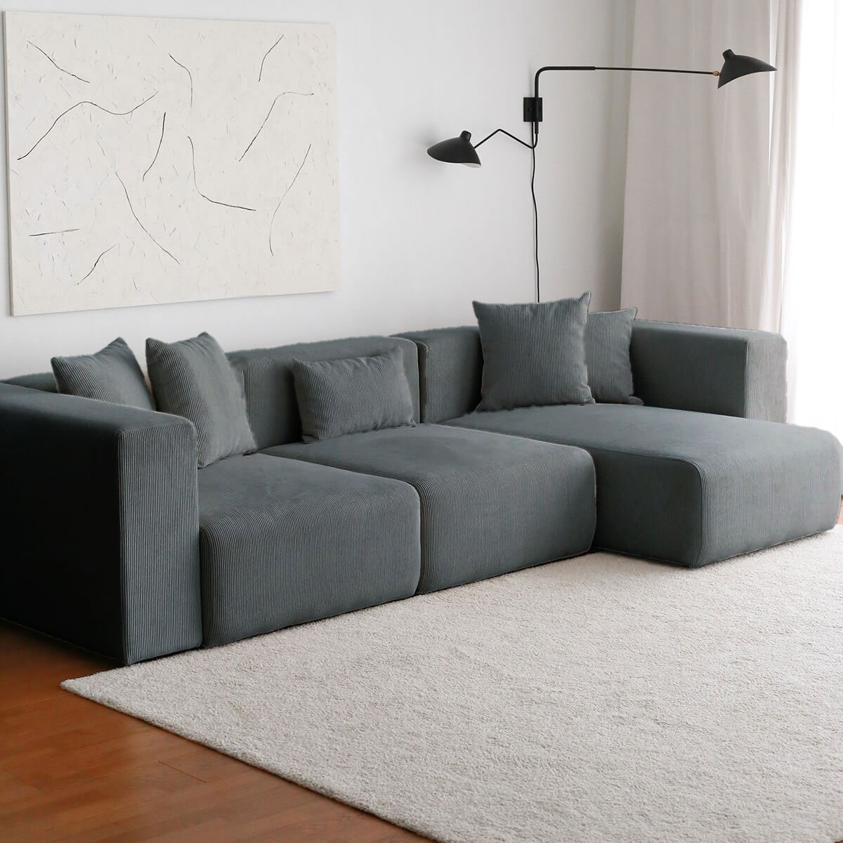 YOLO Modüler Köşe Koltuk ister sağ isterseniz sol köşe olarak kullanılabilir. Evde değişebilecek ihtiyaçlarınıza göre değişerek dekorasyona uyum sağlar. Kırlentlerle beraber gönderilmektedir. YOLO Puf ekstra satın alınarak takıma eklenebilir.