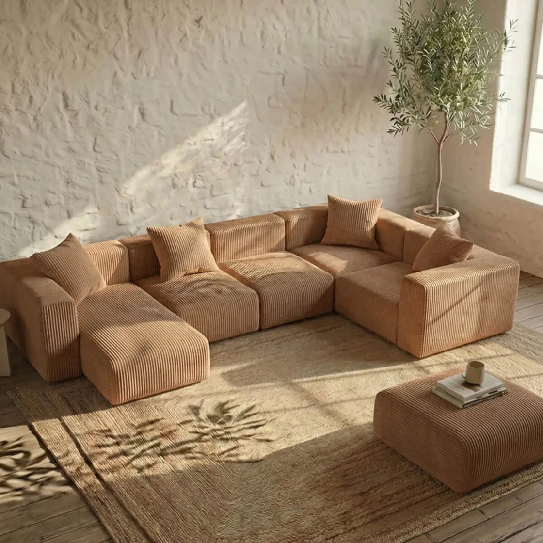 AnasayfaÜrünlerKoltuk, MobilyaYOLO Modüler Uzanmalı L Köşe Koltuk | Kalın Fitilli Bej