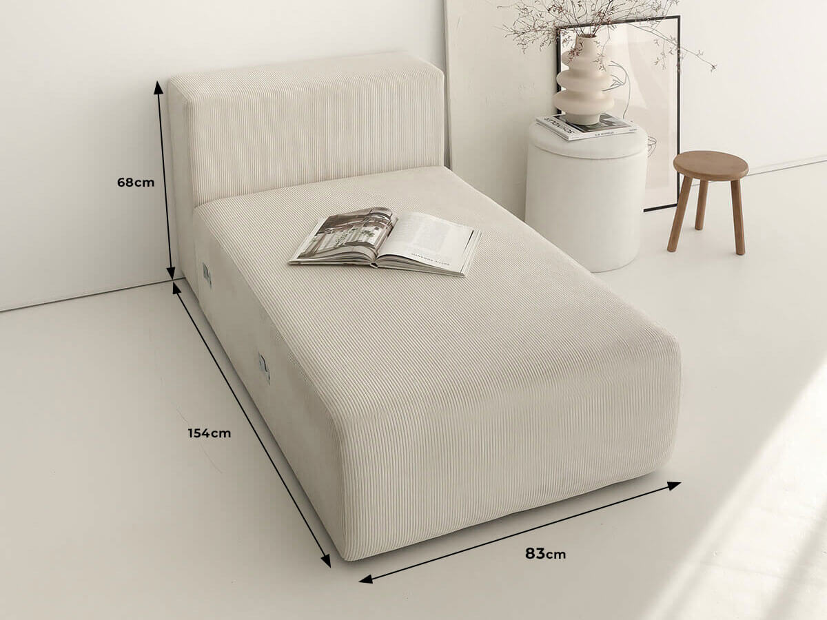 Yumuşak hatları, yeni nesil fitilli kumaşı, modern tasarımıyla öne çıkan YOLO Modüler Koltuk için Uzanma Modülü. YOLO Modüler Koltuğunuzu genişleterek uzanmalı köşe koltuğuna dönüştürmenizi sağlar.